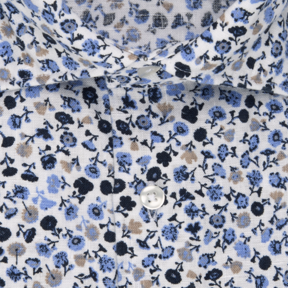 • Приталенный силуэт, Классический воротник, Классический (на пуговице), Принт, Синий