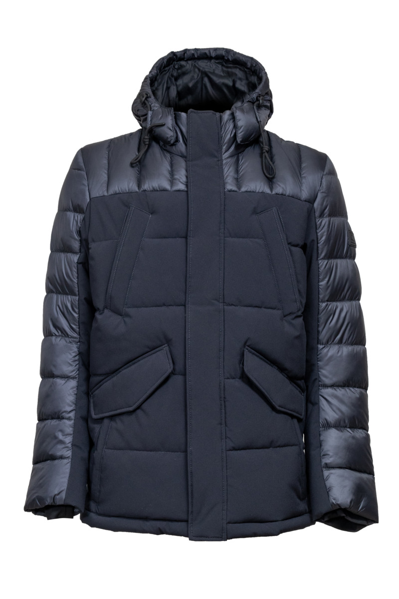 • Комбинированная стеганая куртка с капюшоном, прямого силуэта из ветрозащитного, водоотталкивающего материала. Съемный капюшон с утягивающей кулисой. Воротник-стойка. Застежка на молнию и ветрозащитный клапан на кнопках. Четыре боковых кармана с застежкой на кнопки. Два нагрудных кармана с застежкой на кнопки. Для дополнительного тепла, внутри карманов мягкий флис. Предусмотрено два внутренних кармана с застежкой на молнию. Внутри рукава трикотажный манжет.На левом рукаве фирменный логотип. Легкая и теплая куртка отлично подходит для повседневной носки, прогулок и путешествий.